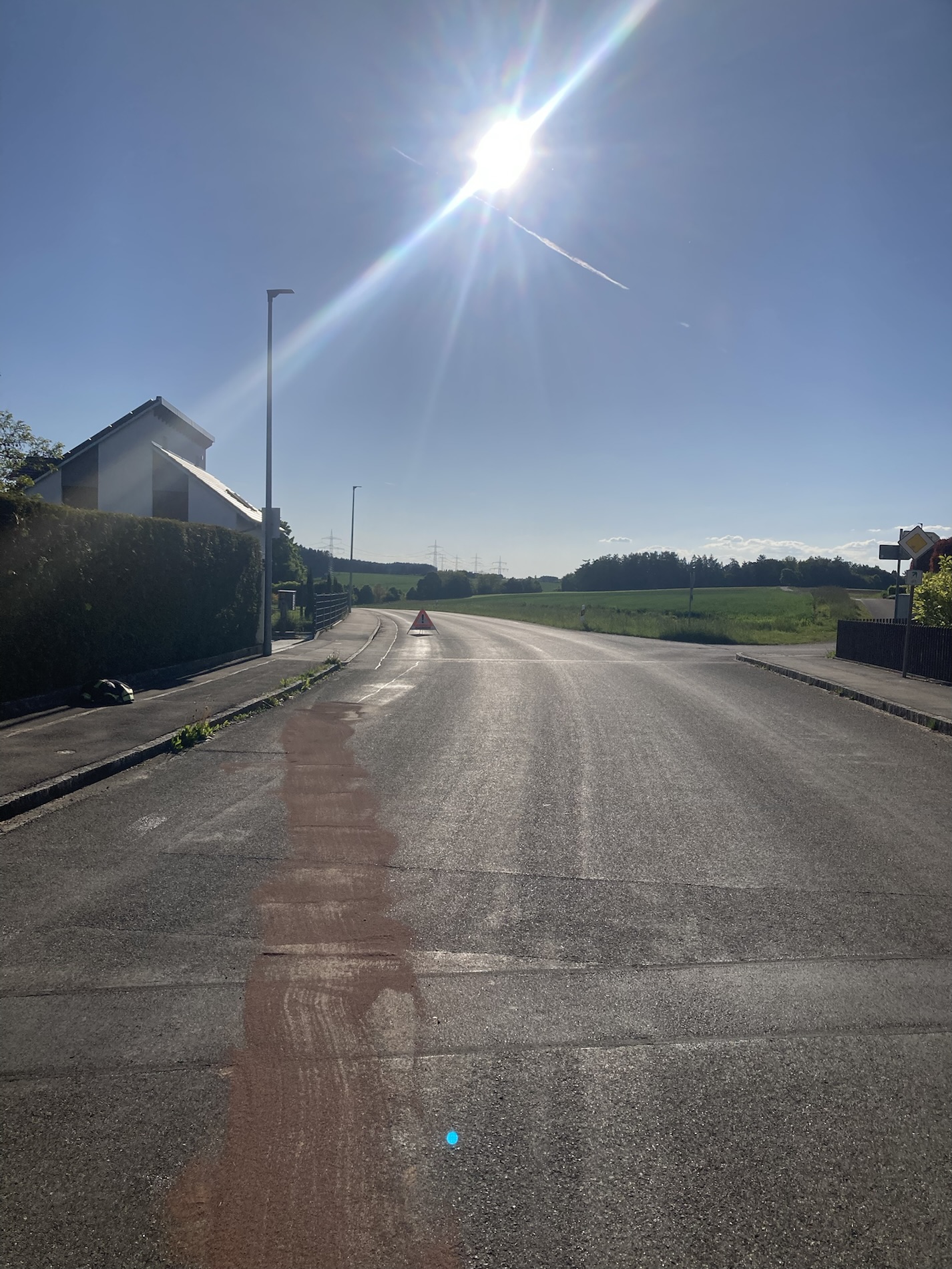 Ölspur in Rieblingen: Mit Bindemittel wird das ausgetretene Öl auf der Straße aufgenommen und zusammengekehrt.